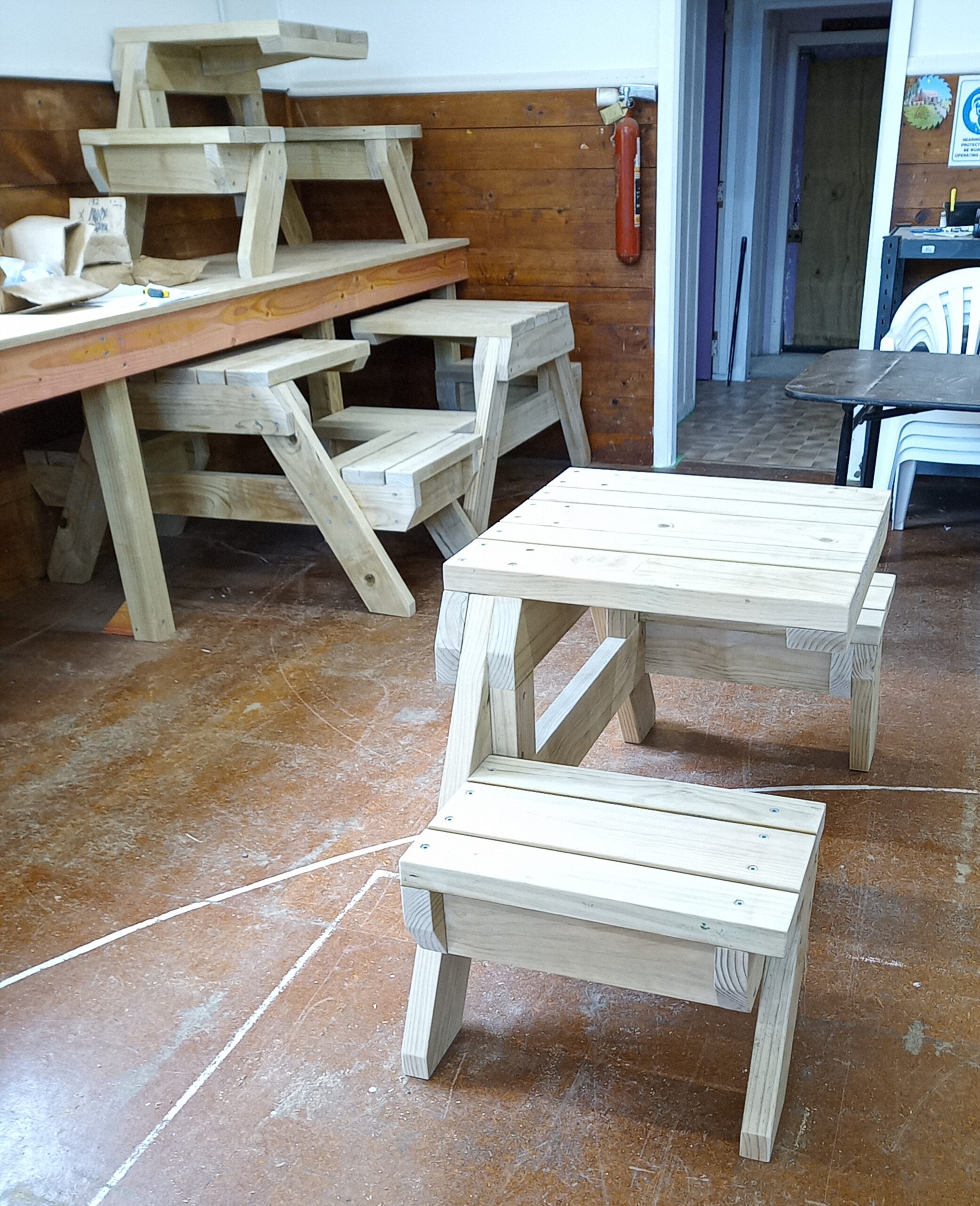 The Grape Escape Cafe/Restaurant at Appleby near Richmond today took delivery of four outdoor two-seater picnic tables, which they see as the solution to couples using larger tables, blocking family use. These sturdy tables, designed and developed by a Mohua MenzShed member, will last them many years. They have now been oiled and will no doubt see much use through the summer months.