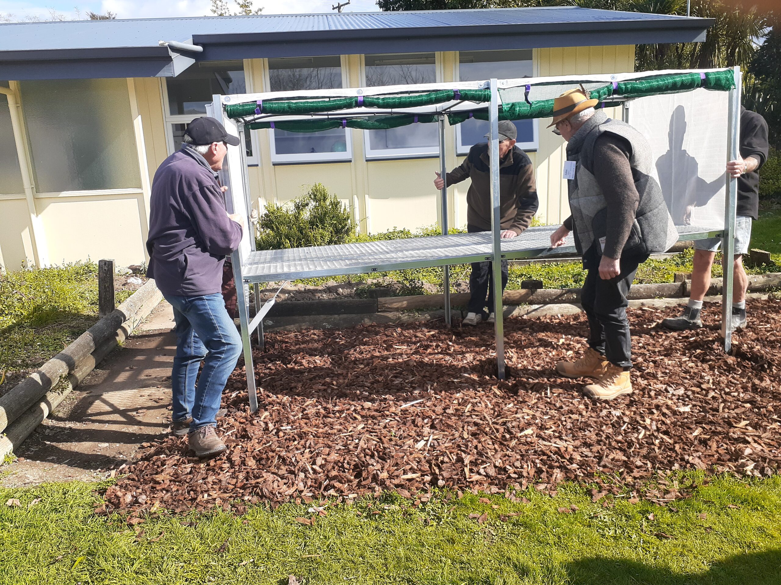 Mohua MenzShed was commissioned to build six plant propagators for the Trees for Survival Project for three Golden Bay Schools. This Project, funded by Fonterra, has been supplying propagators to schools around North Island for the last four years, with local MenzSheds around North Island assembling and delivering them. Mohua MenzShed was delighted to be chosen as the first to assemble and deliver these large propagators, two each to Motupipi Primary School, Golden Bay High School and Collingwood Area School. These propagators have now been handed over to the schools for the pupils to start bringing on those native seedlings.